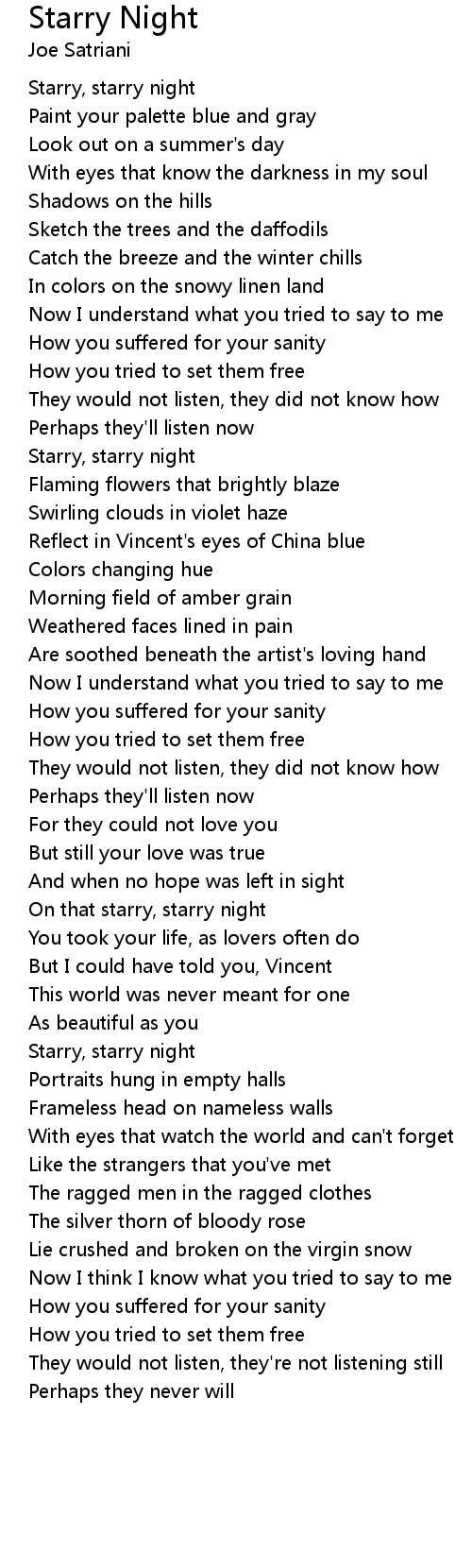 On that starry, starry night |