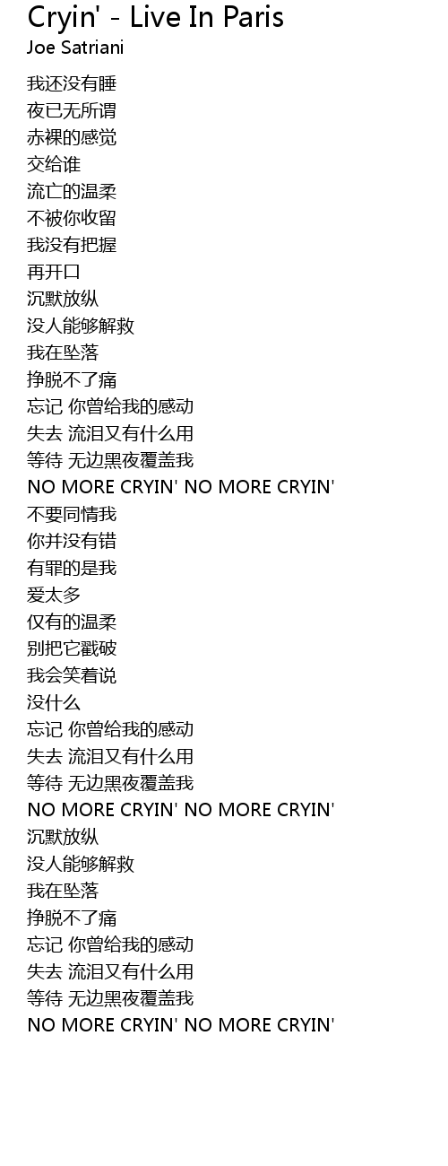 | [04:18.000] | NO MORE CRYIN' NO MORE CRYIN' |