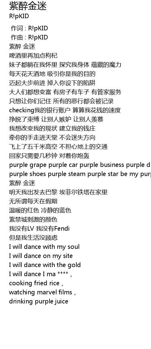 | [01:05.813] | purple shoes purple steam purple star be my purple square |