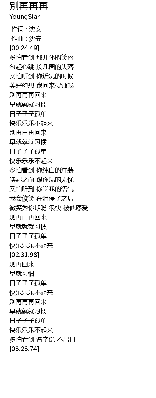 | [03:16.15] | duō pà kàn dào míng zì shuō bù chū kǒu |