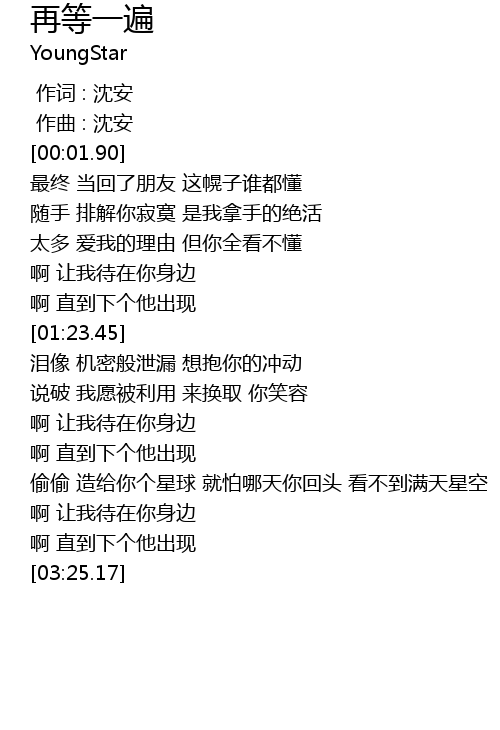 | [01:32.21] | 泪像 机密般泄漏 想抱你的冲动 |