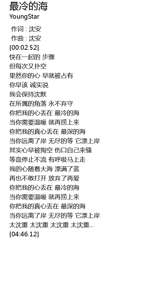 | [00:00.000] | 作词 : 沈安 |
