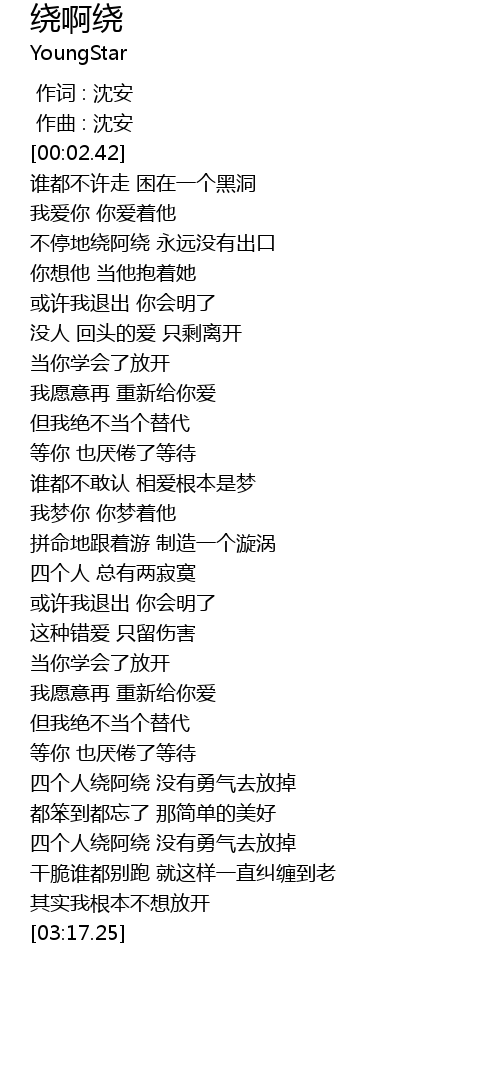 | [02:57.86] | 四个人绕阿绕 没有勇气去放掉 |