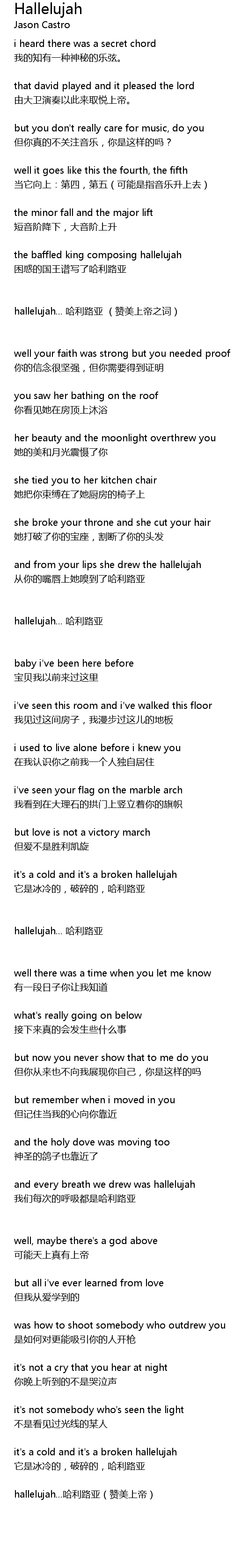 | hallelujah... hā lì lù yà zàn měi shàng dì |