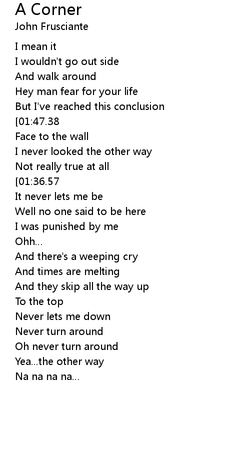 | [00:33.38][01:47.38] | Everyone's in a corner |