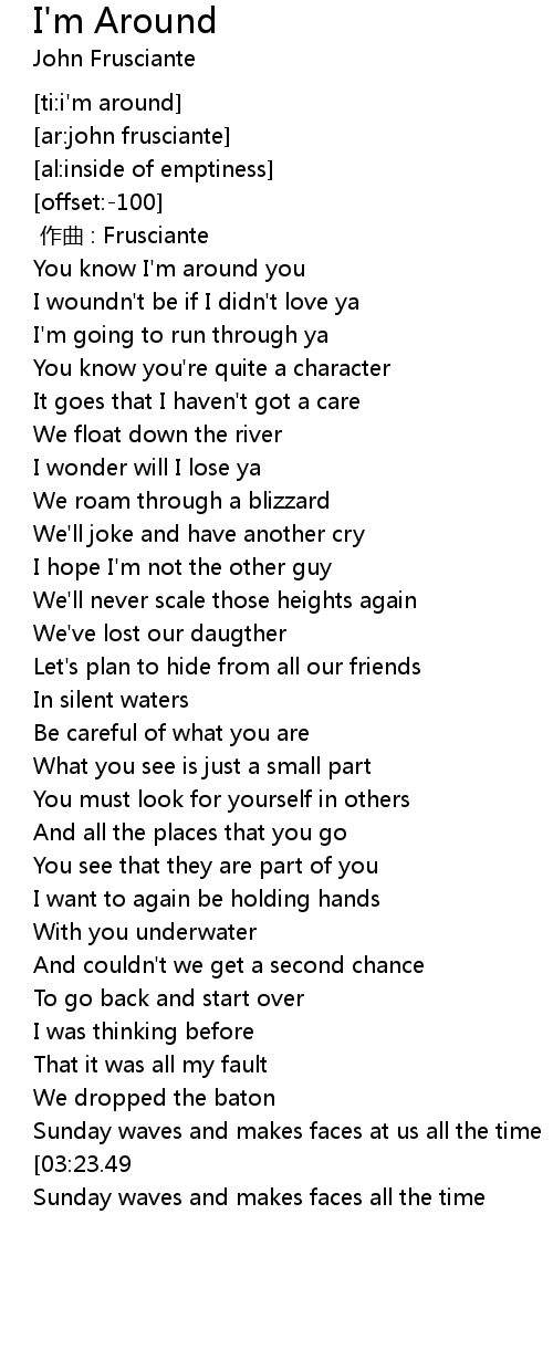 | [03:16.96] | Sunday waves and makes faces all the time |