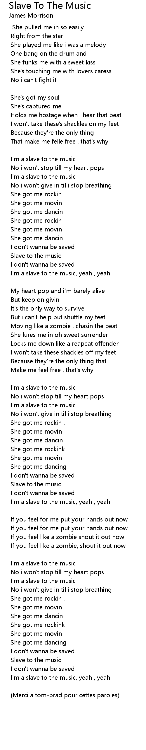 I'm a slave to the music, yeah , yeah |