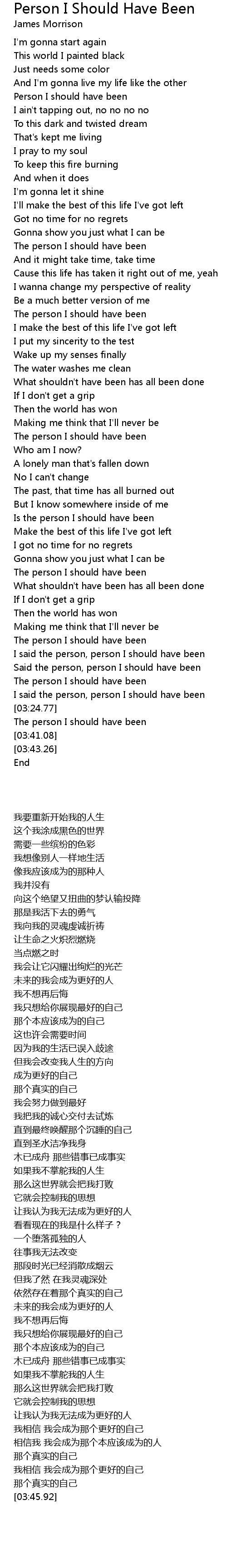 [03:18.21] I said the person, person I should have been