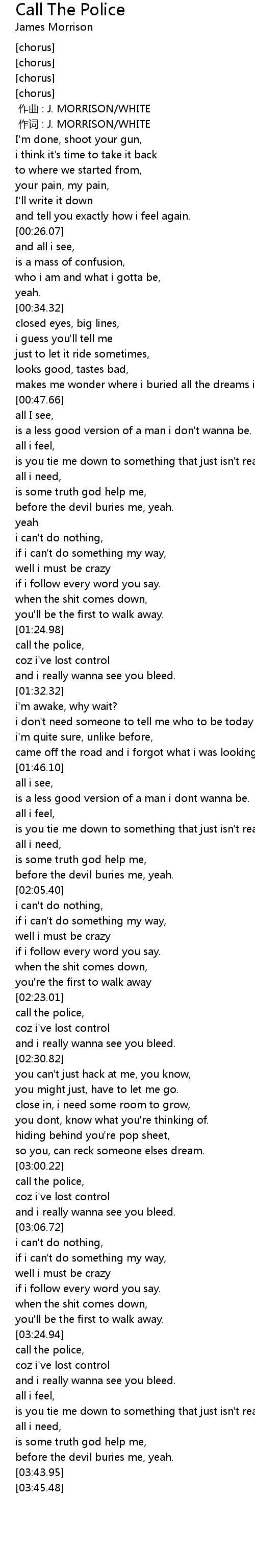 | [00:01.00] | 作词 : J. MORRISON/WHITE |