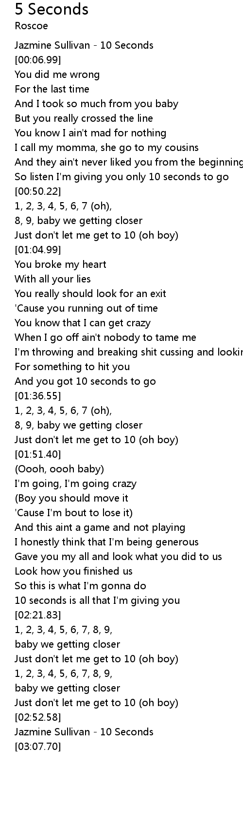 [00:01.10] Jazmine Sullivan - 10 Seconds