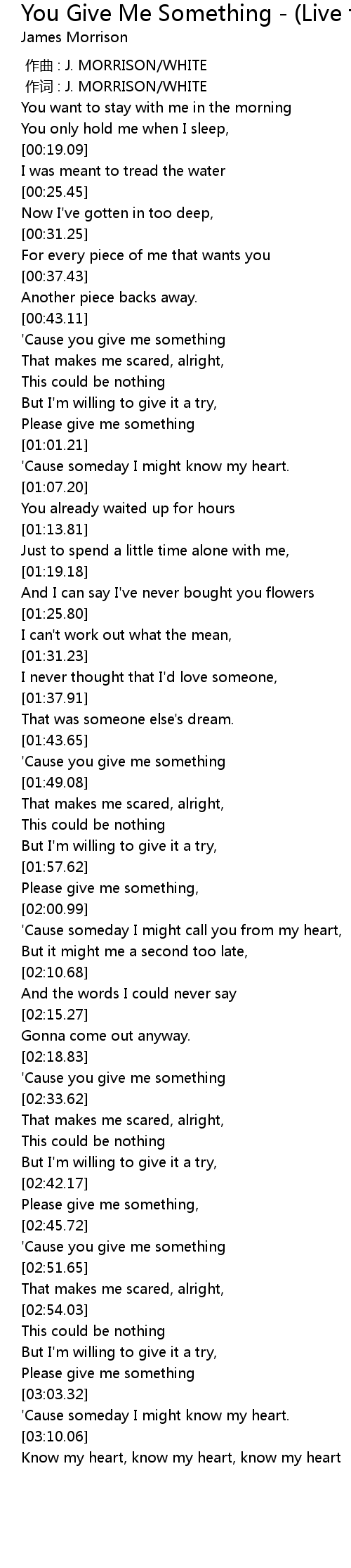 | [00:01.00] | 作词 : J. MORRISON/WHITE |