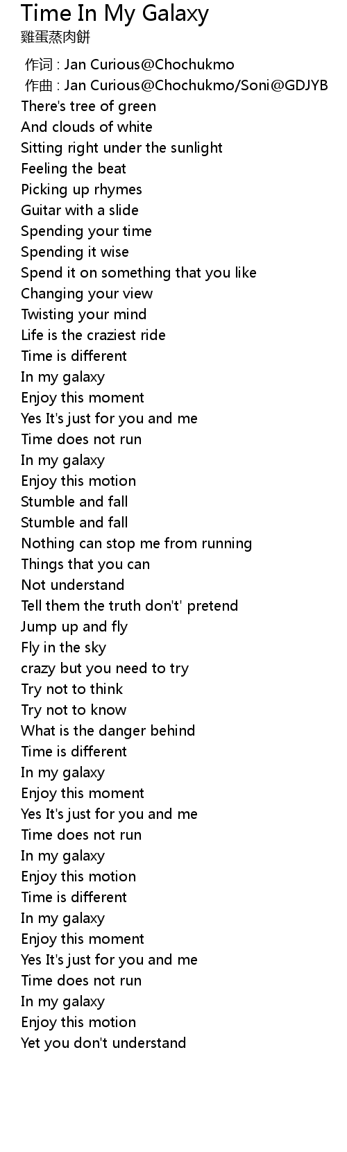 | [00:00.000] | 作词 : Jan Curious@Chochukmo |