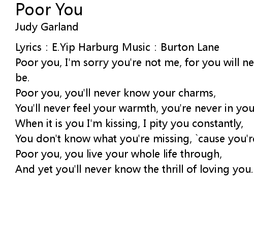 | You don' t know what you' re missing, cause you' re only kissing poor me. | |