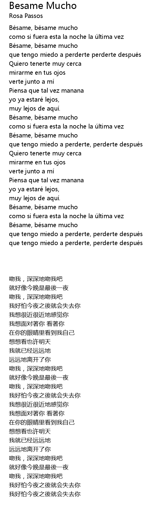 | [00:28.440] | Bésame, bésame mucho |