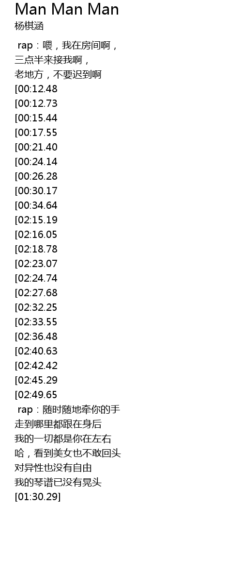 | [03:15.90][02:23.07][00:47.61] | Man man man |