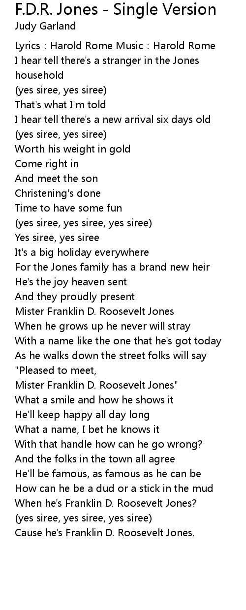 | Cause he' s Franklin D. Roosevelt Jones. |