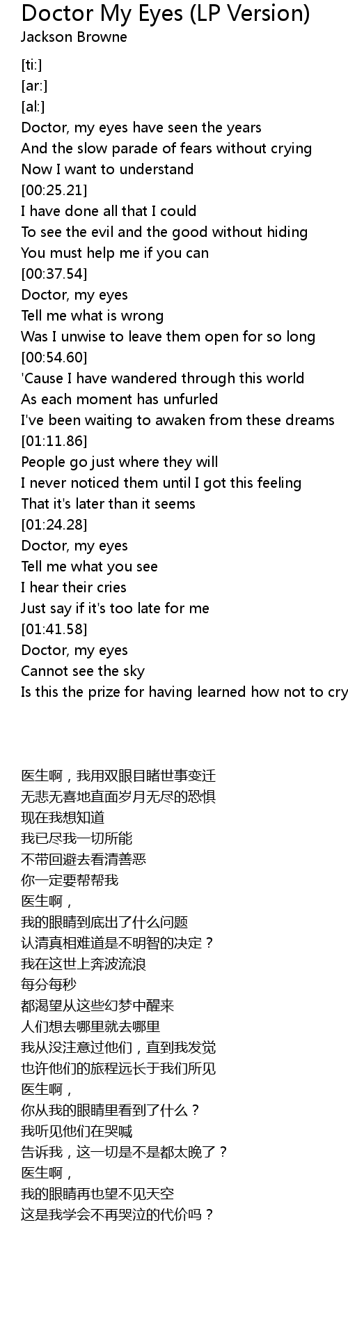 Doctor, my eyes have seen the years |