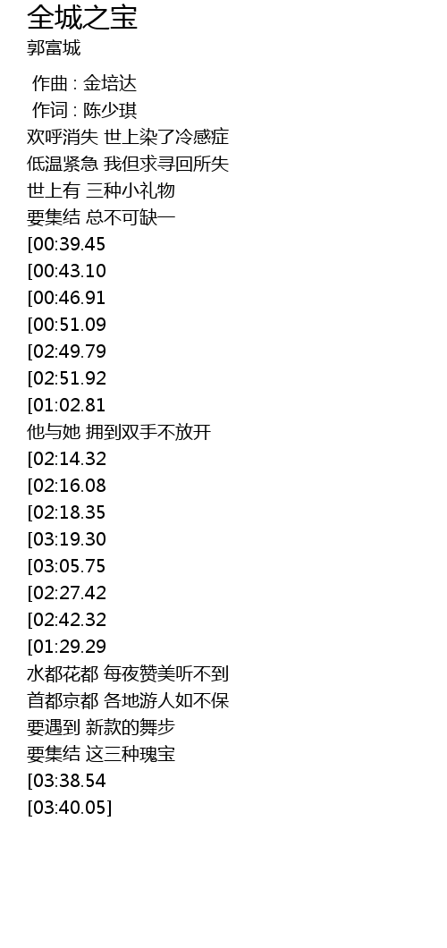 | [03:28.57][02:42.32] | 全城之宝重来 和平欢欣与爱 |