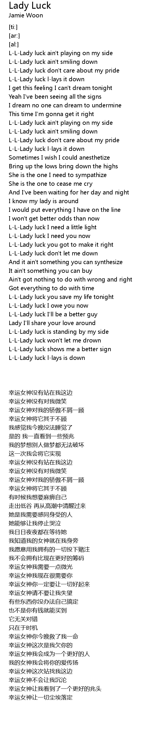 L-L-Lady luck I need you now |