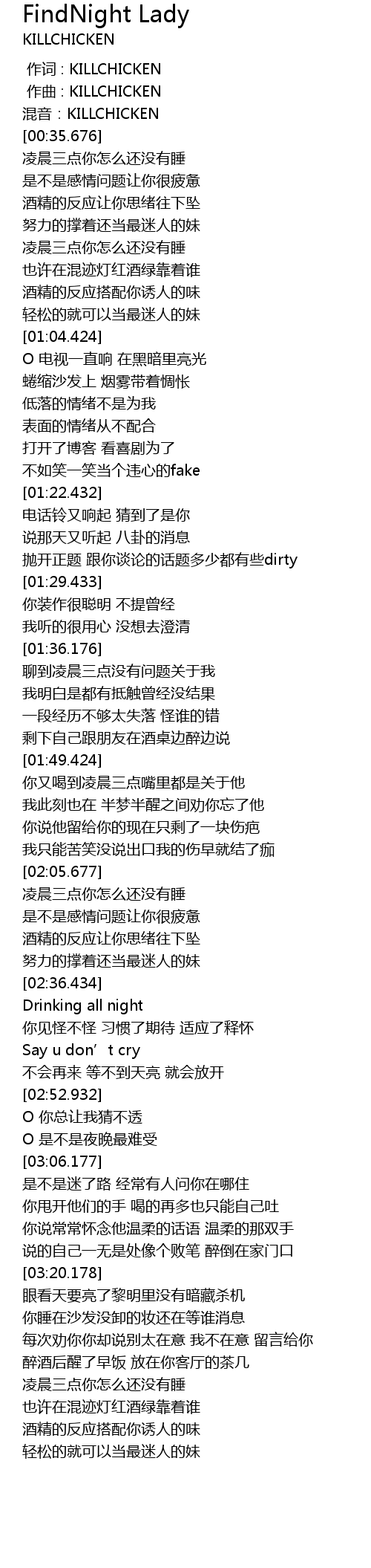 | [00:00.000] | 作词 : KILLCHICKEN |