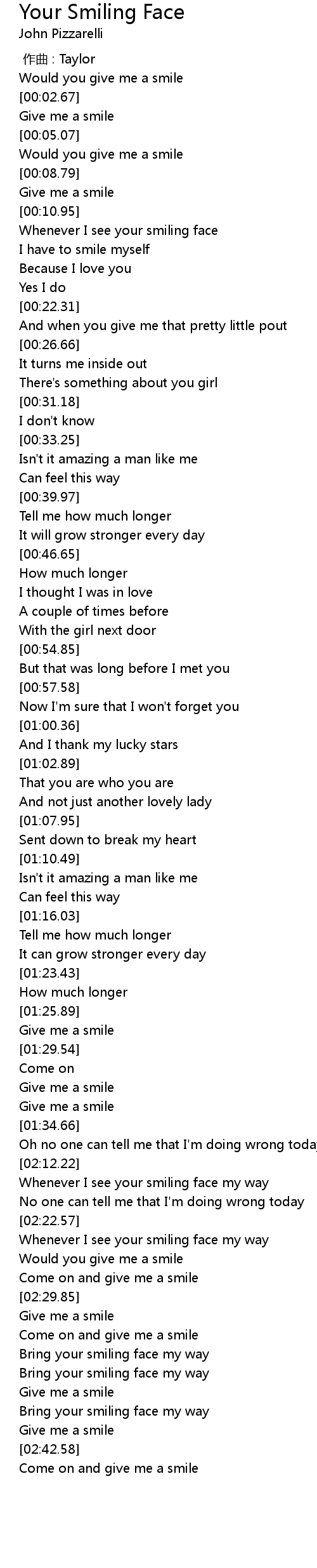 | [02:43.36] | Come on and give me a smile |