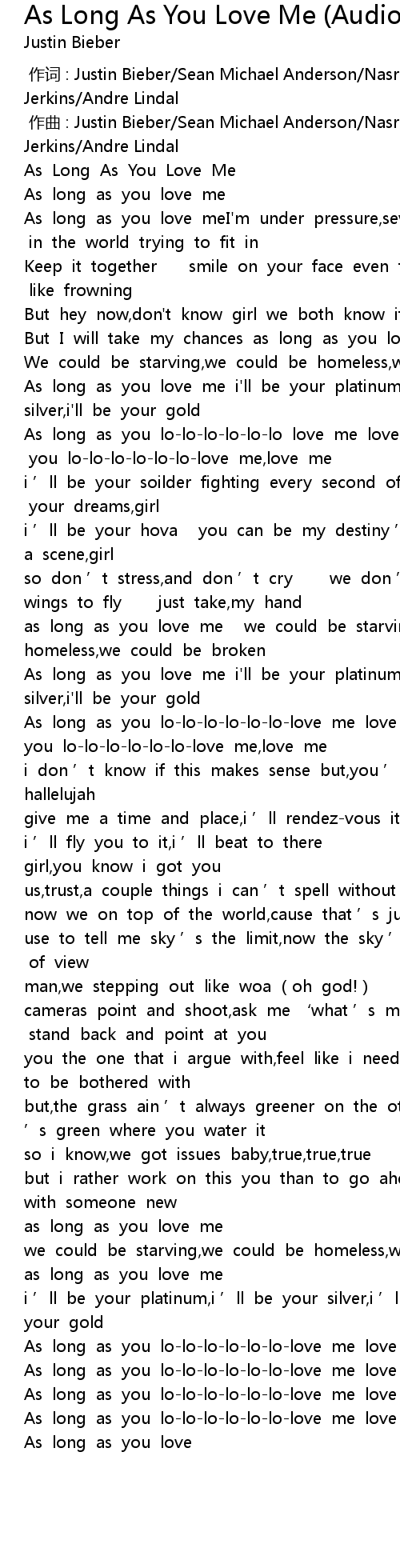 | [03:01.75] | As long as you lo-lo-lo-lo-lo-lo-love me love me |