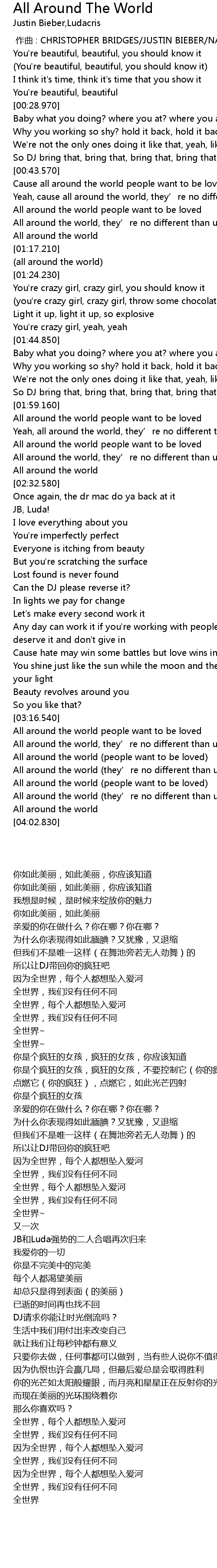 | [00:50.410] | Yeah, cause all around the world, they' re no different than us |
