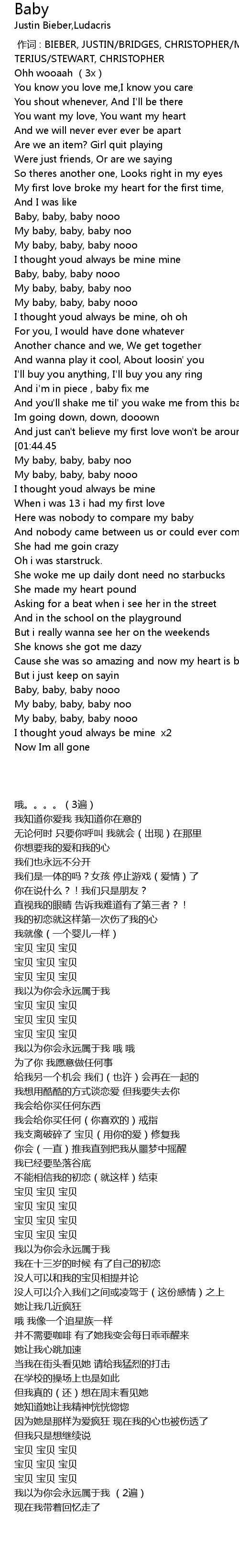 | [01:44.74][01:44.45] | Baby, baby, baby nooo |