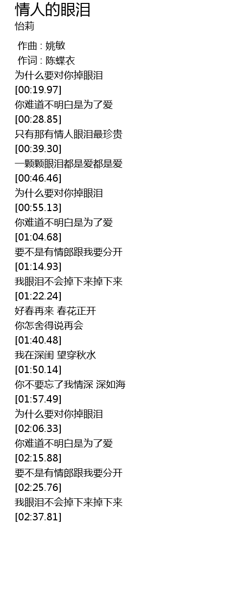 | [00:30.71] | 只有那有情人眼泪最珍贵 |
