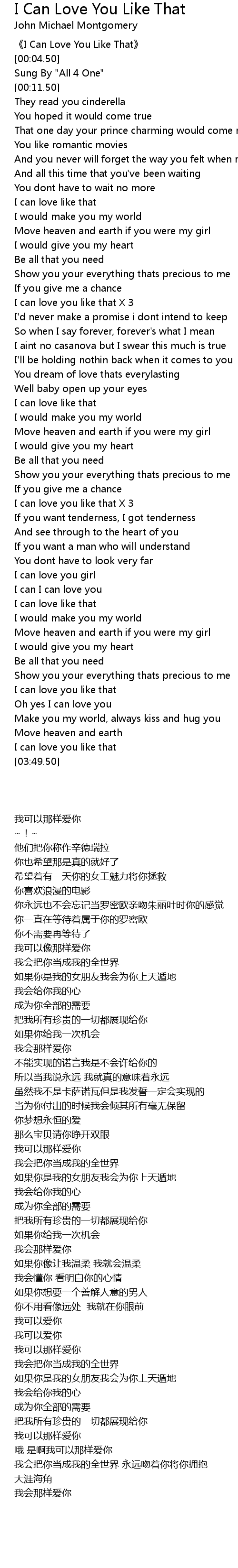 | [00:-9.50] | 《I Can Love You Like That》 |