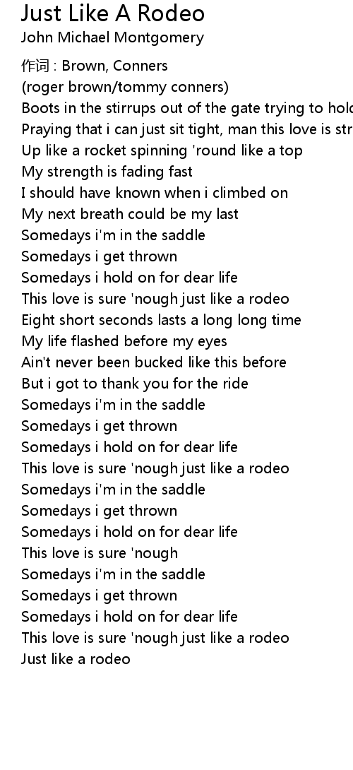 | This love is sure ' nough just like a rodeo | |
