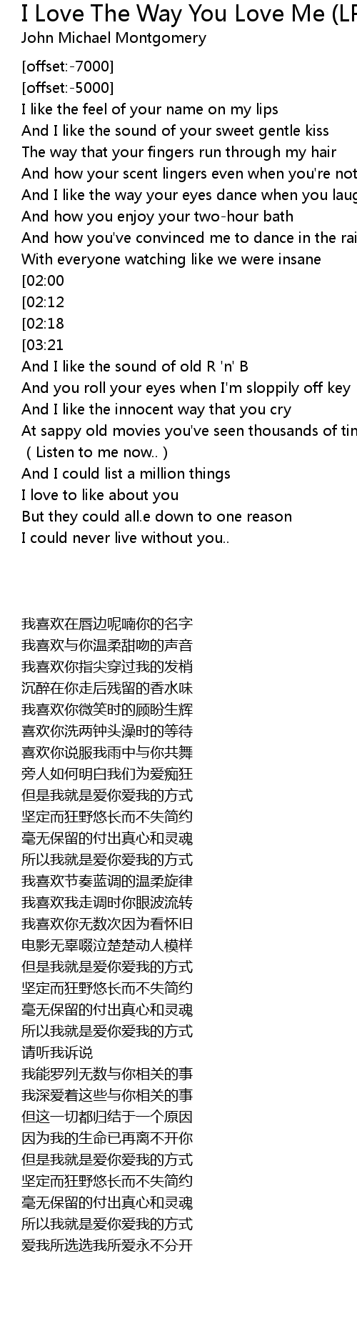 | [02:57][02:00][01:03] | But I love the way you love me |