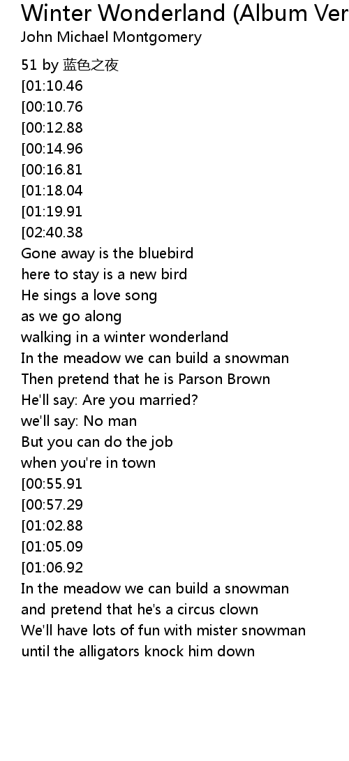 | [01:51.43][01:06.92] | walking in a winter wonderland |