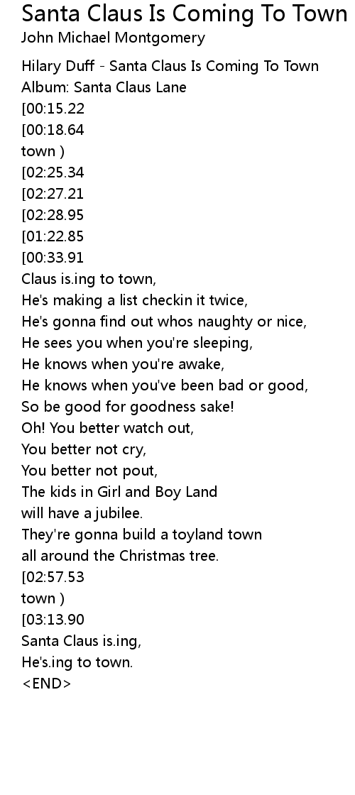 | [03:10.45][03:13.90] | Santa Claus is. ing He' s. ing to town |