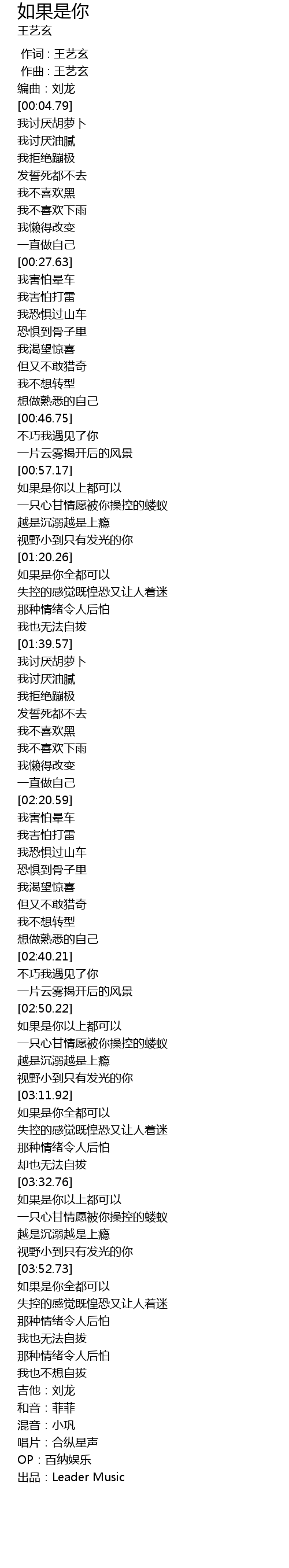 | [00:01.000] | zuò qǔ : wáng yì xuán |
