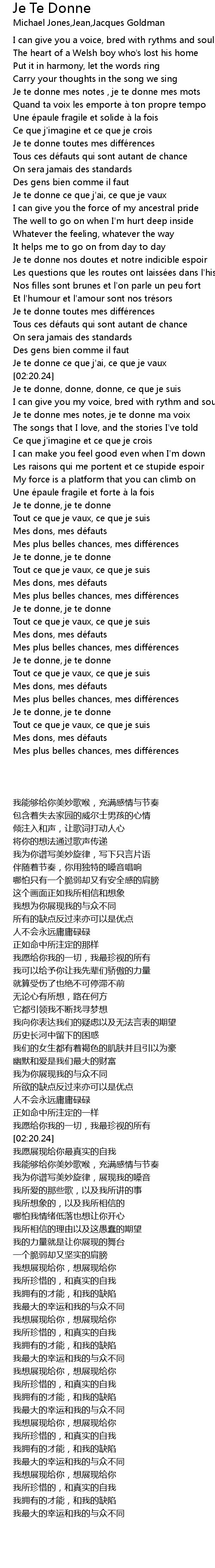 | [02:43.23] | Je te donne mes notes, je te donne ma voix |