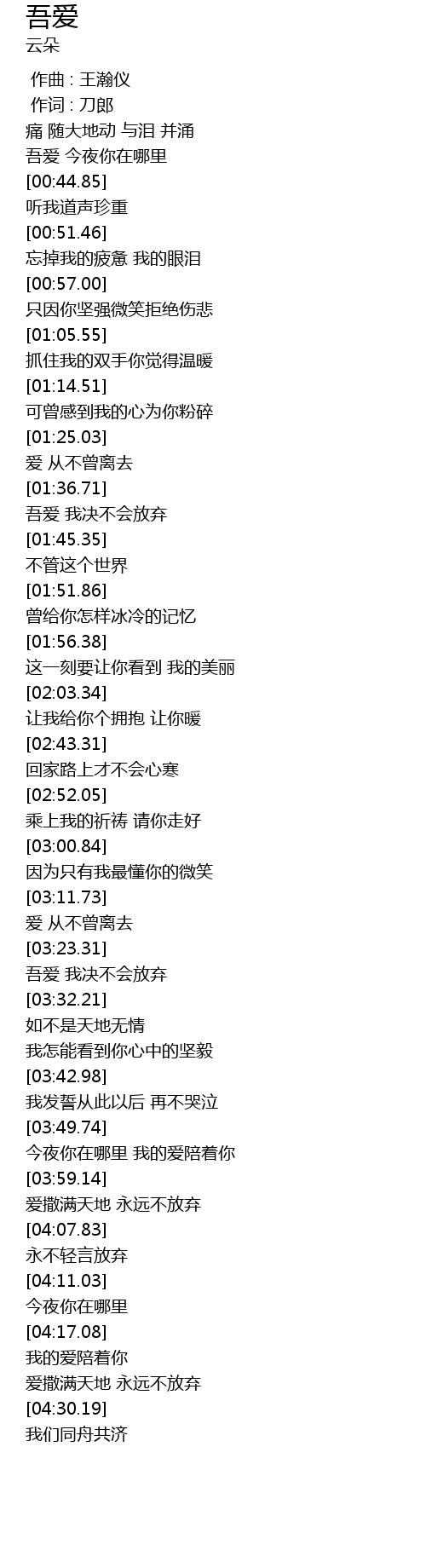 | [01:40.17] | 吾爱 我决不会放弃 |