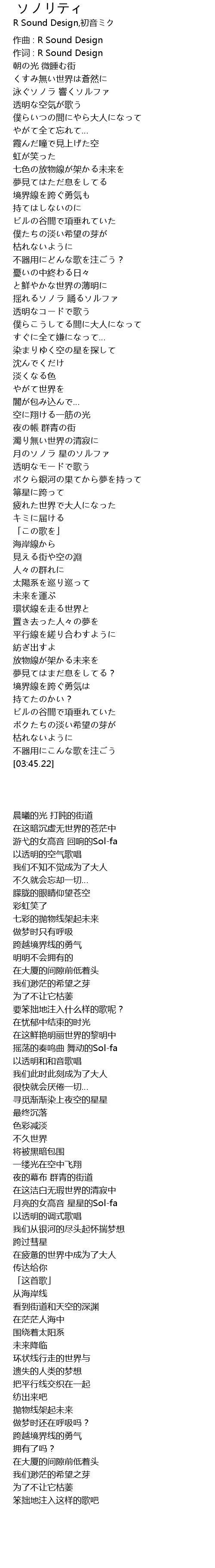 | [01:38.30] | 揺れるソノラ 踊るソルファ |