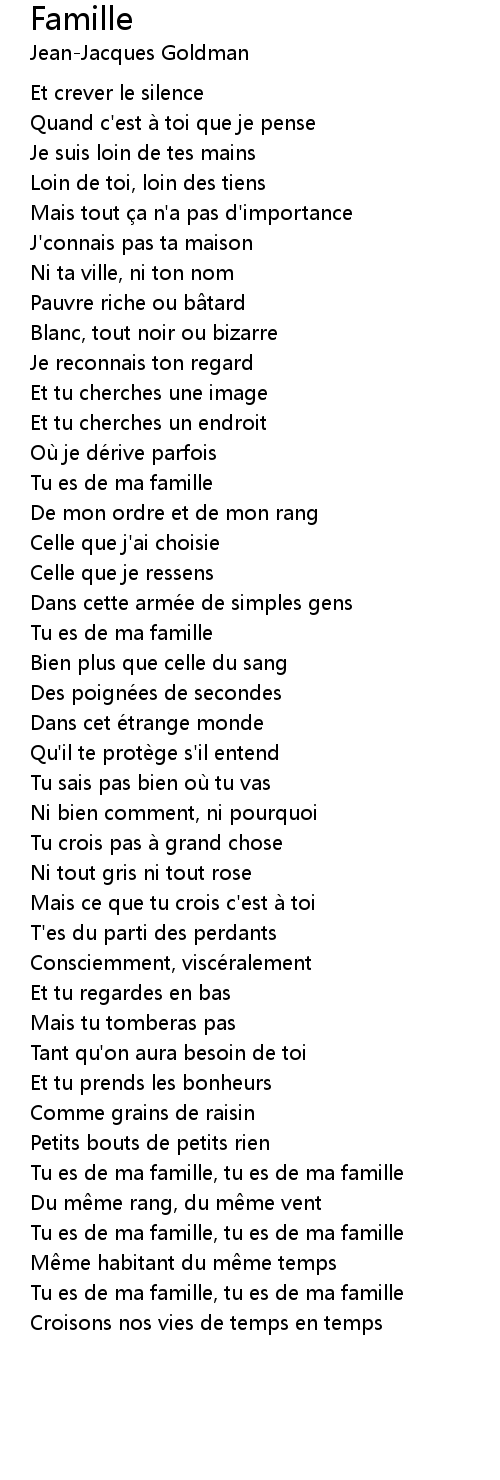 | Tu es de ma famille, tu es de ma famille | |