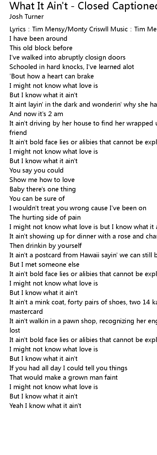 | Song | What It Ain't - Closed Captioned, Album Version |