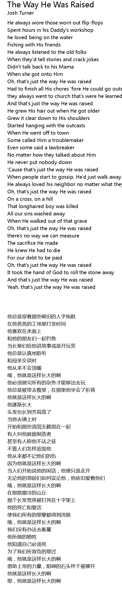 'Cause that's just the way He was raised |