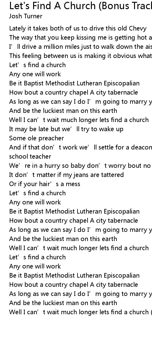 | [00:47.84] | How bout a country chapel A city tabernacle |