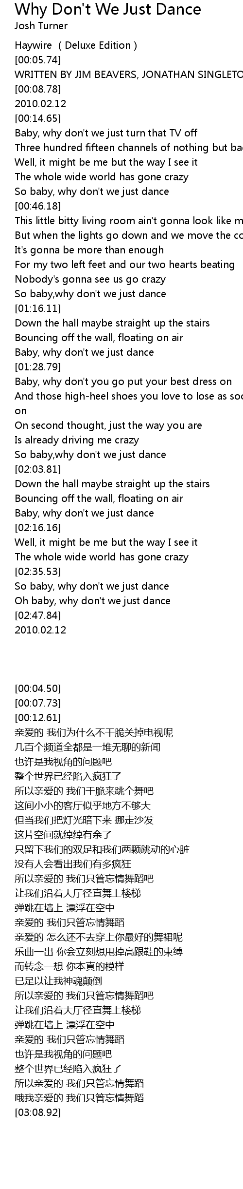 | [02:41.70] | Oh baby, why don' t we just dance |