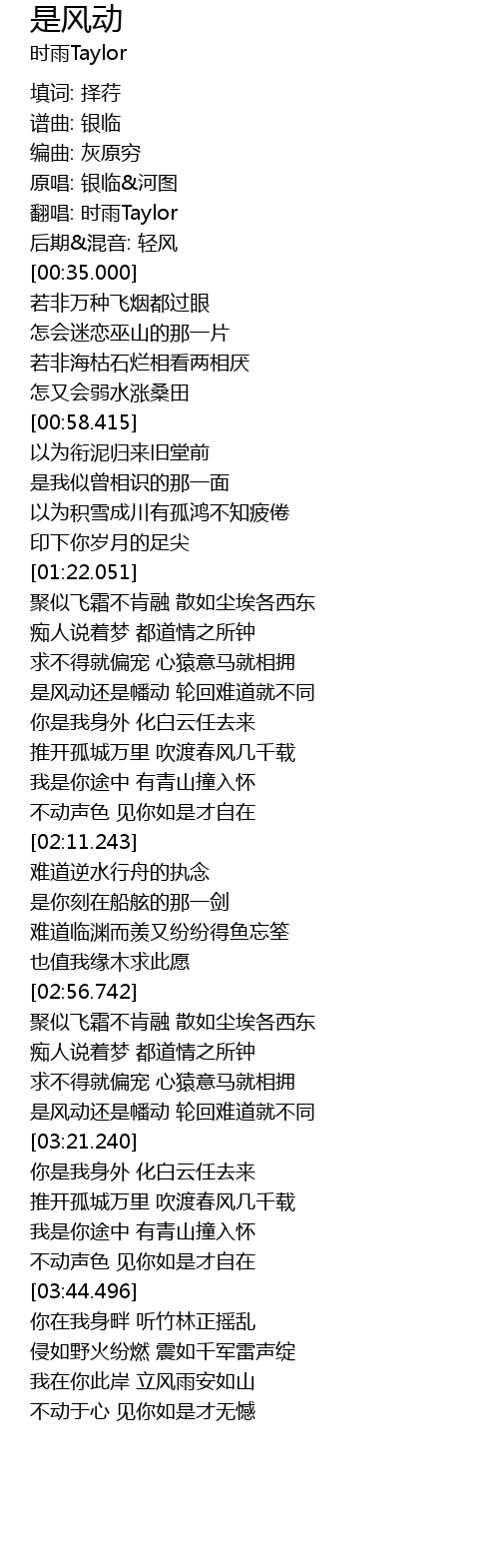 | [03:15.490] | 是风动还是幡动 轮回难道就不同 |