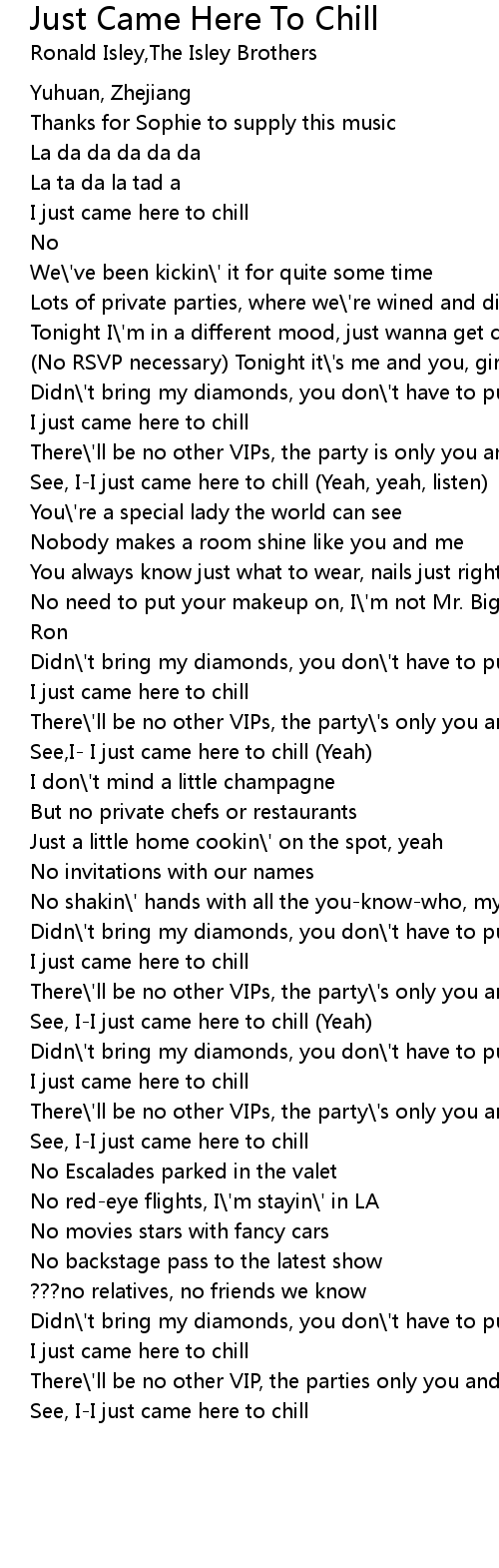 See, I-I just came here to chill (Yeah, yeah, listen) |