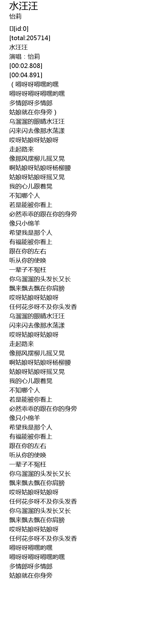 | [01:50.327] | 乌溜溜的眼睛水汪汪 |