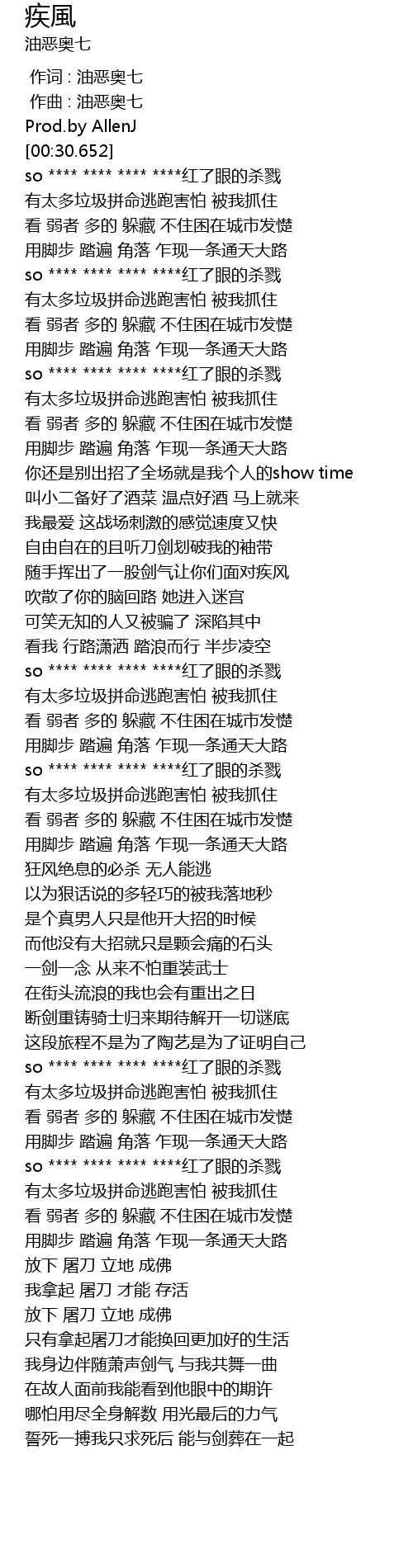 | [01:30.352] | so **** **** **** ****红了眼的杀戮 |