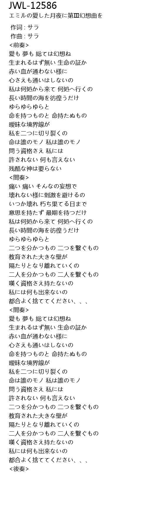 | Artist | エミルの愛した月夜に第Ⅲ幻想曲を |
