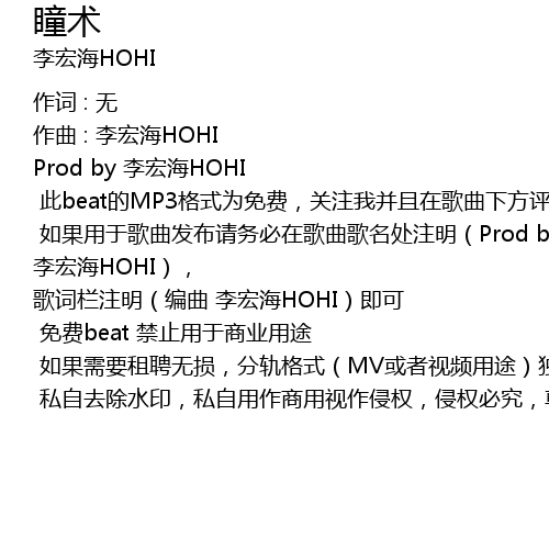 | Album | 【免费】瞳术(Prod by 李宏海HOHI) |