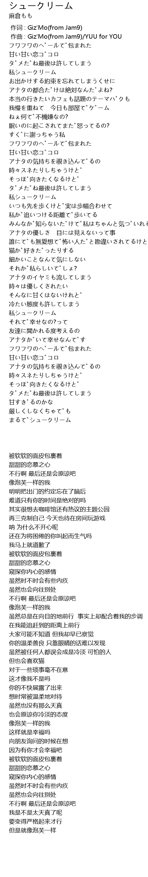 | [00:01.000] | zuò qǔ : Giz' Mo from Jam9 YUU for YOU |